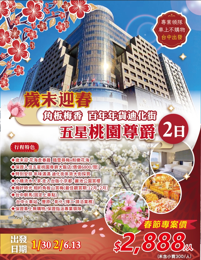 台中出發~歲末迎春X角板梅香 百年年貨迪化街 五星桃園尊爵